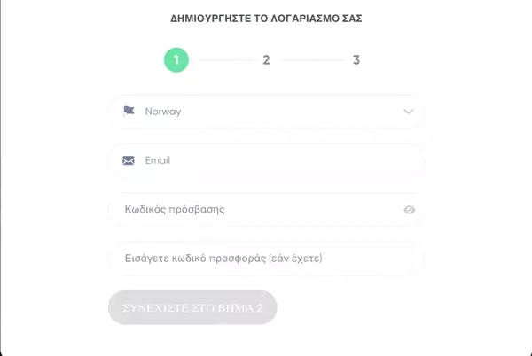 - Ανοίξτε τη φόρμα εγγραφής στον ιστότοπό μας και εισαγάγετε το email σας, έναν ασφαλή κωδικό και βασικά στοιχεία προφίλ.